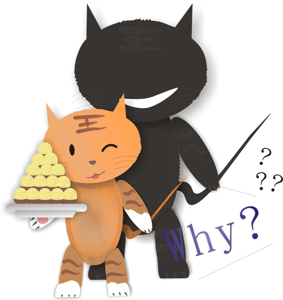 一天,巧克力公司在促銷,每3顆巧克力的糖果紙,可以換1顆巧克力,結果三杯貓跑去買了10顆巧克力,為什麼他能吃到15顆巧克力呢!(這需要一點腦筋急轉彎喔! )