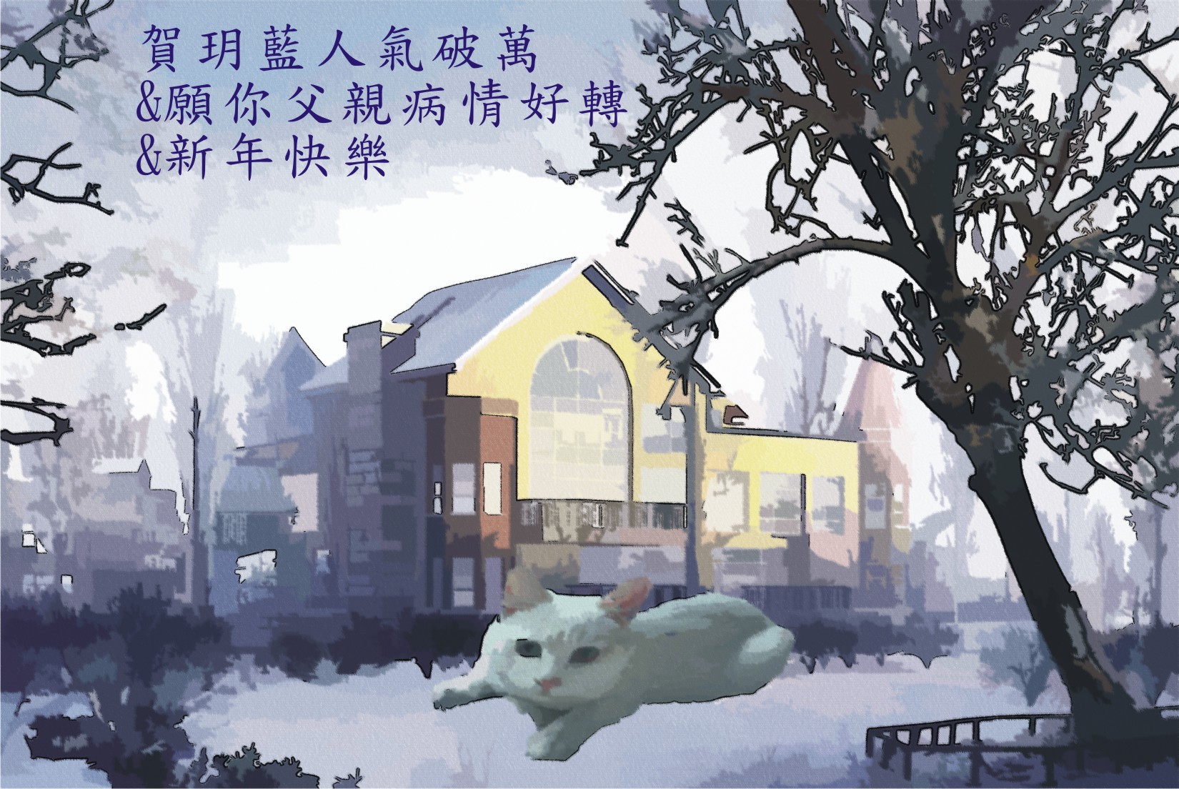 話說,玥藍大大最喜歡藍色,所以整個背景、文字、貓兒,都偏藍色,希望玥藍大大喜歡嘍!三杯貓沒會別的,就只能為你禱告跟製賀圖給你,這隻貓有點像兔子呢!感謝您之前的關心,總之願上帝看顧你的家,加油嘍!!